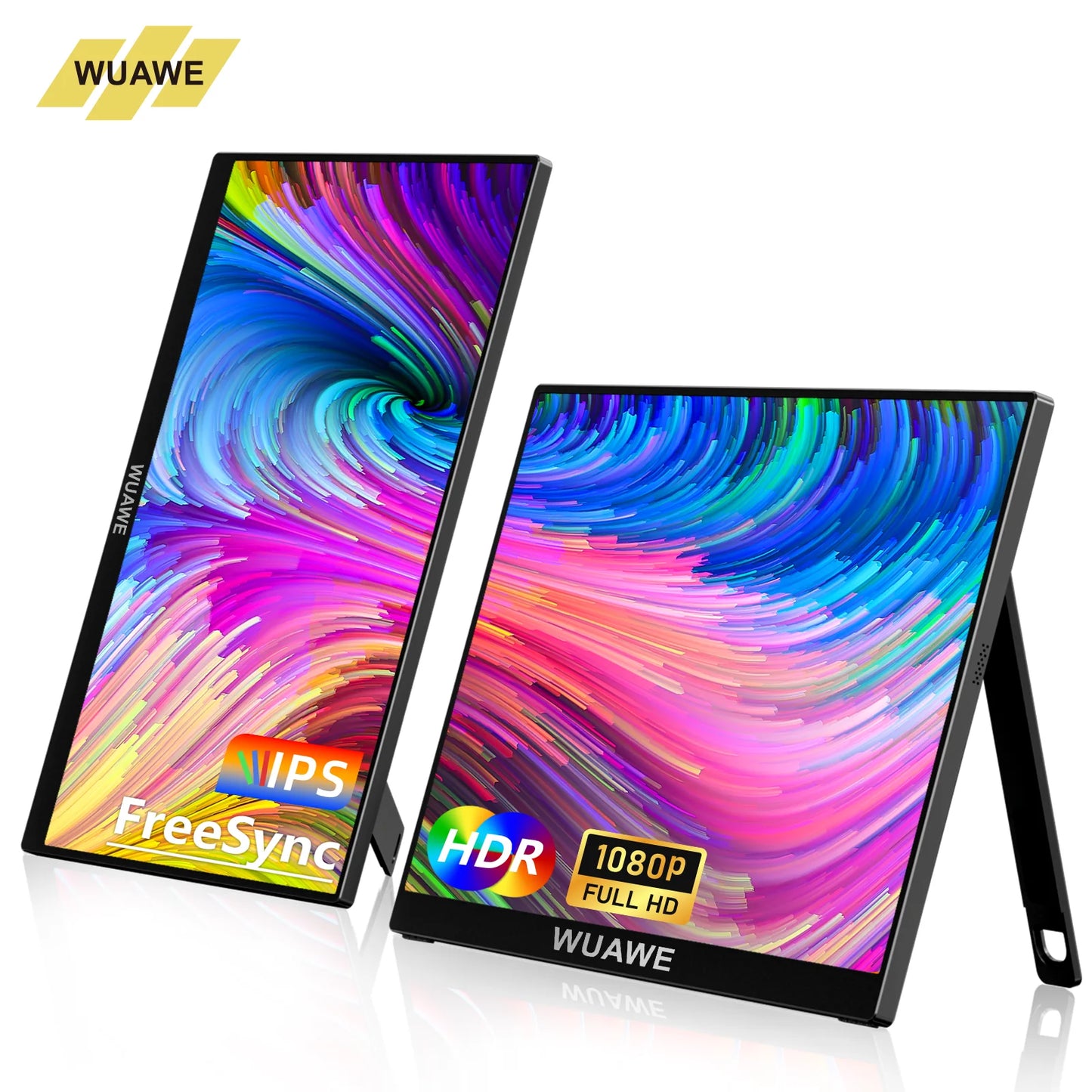 [ FHD 1080P PORTABLE MONITOR ]: WUAWE using a 15.6''(8.8"x14.2") advanced IPS screen with 178° wide viewing angle, Delivers 1920*1080 breathtaking viewing quality and HDR technology,WUAWE portable gaming monitor has excellent color rendering ability, provide you the clearer, smooth, excellent performance in gaming/multimedia. It can effectively reduce blue light radiation damage, no flickering, eye-care, and make it easier to watch for a long time