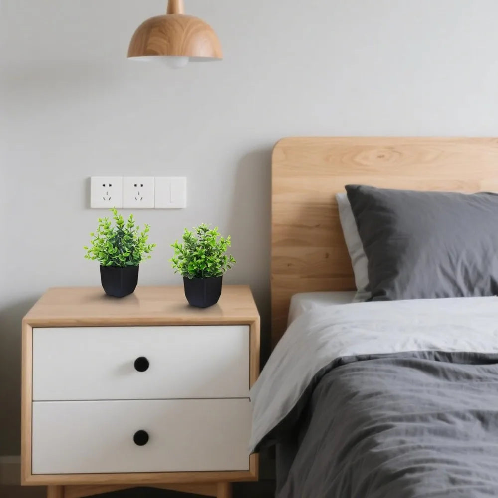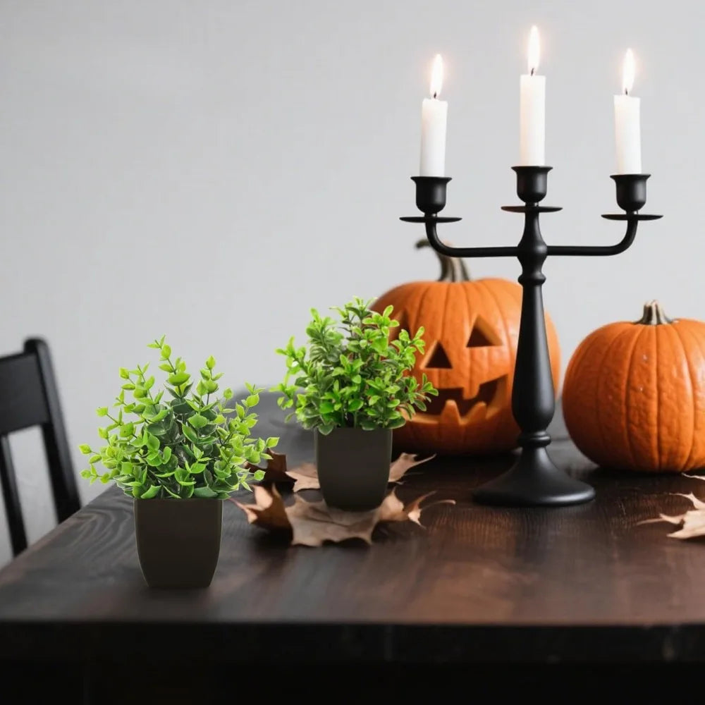 4 Pack Black Mini Artificial Greenery Potted Plants