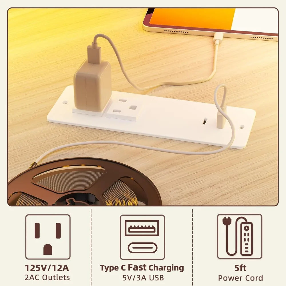 63'' L-Shaped Standing Desk with LED Light Strip and Power Outlet