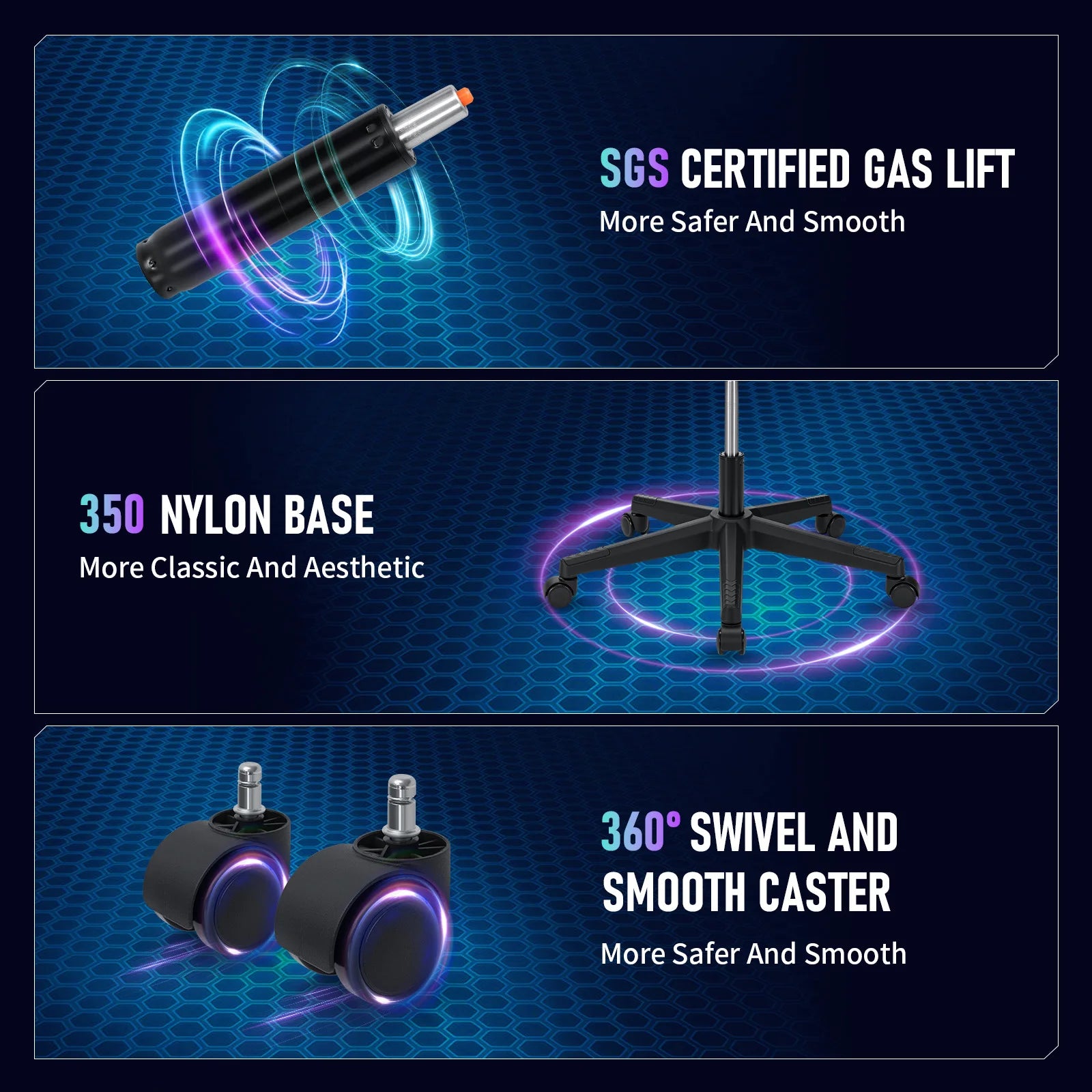 Adjustable Gamer Chair with LED Lighting, Footrest & Lumbar Support