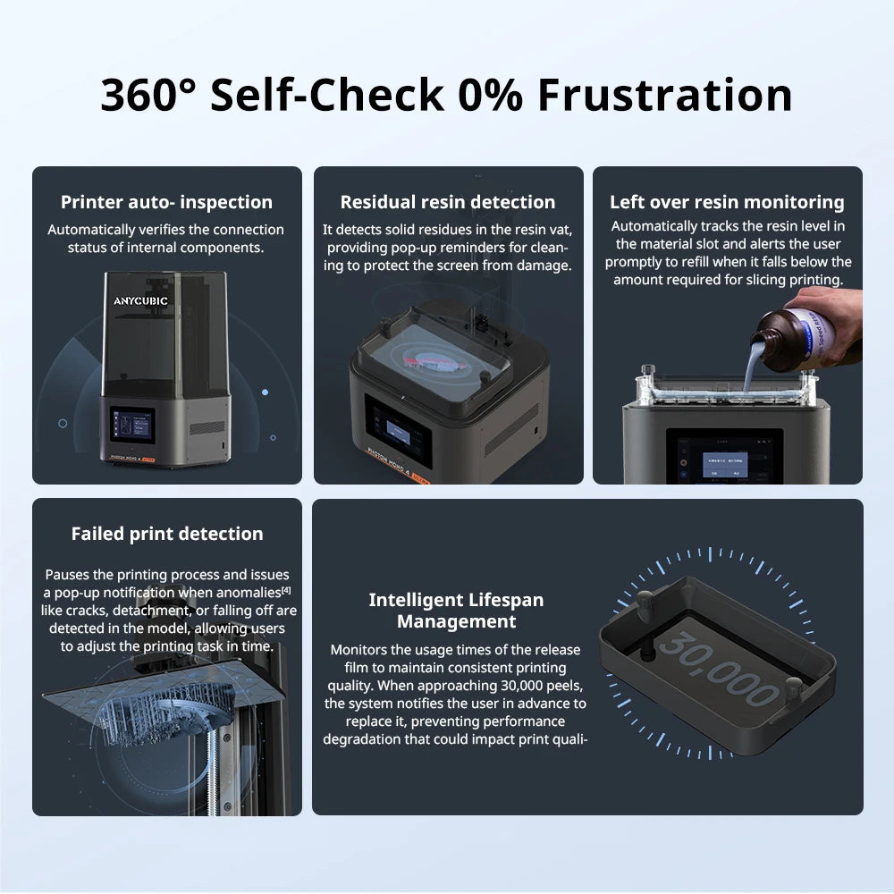 Printer auto- inspection | Residual resin detection | Left over resin monitoring | Failed print detection | Intelligent Lifespan Management