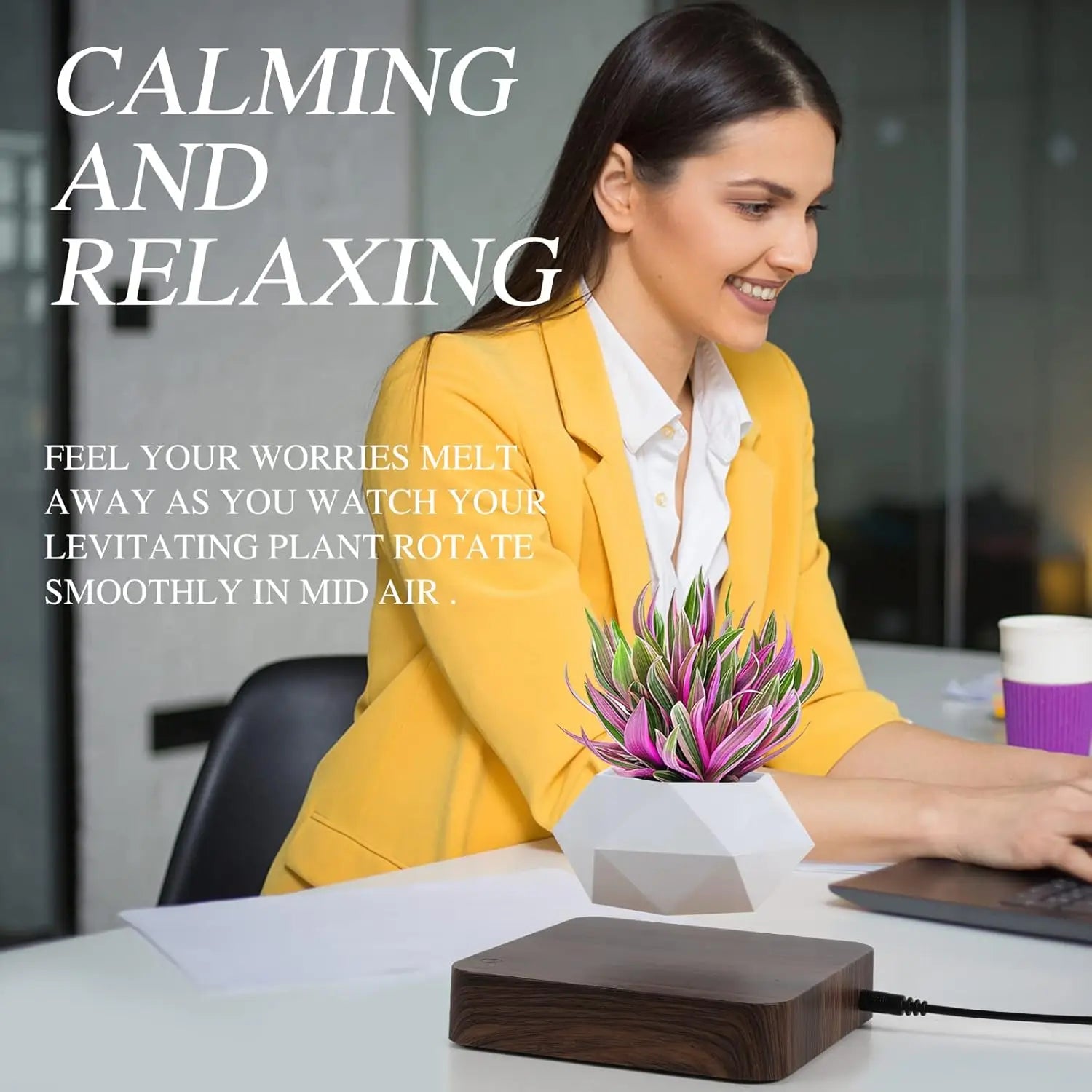 Floating Magnetic Bonsai Pot, Rotating Plant Decor for Home Desk