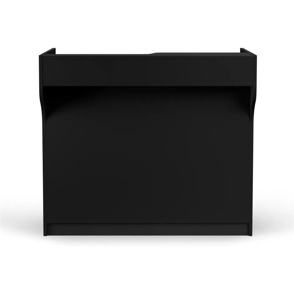 Free-Standing Black Melamine Register Stand, with Adjustable Shelves