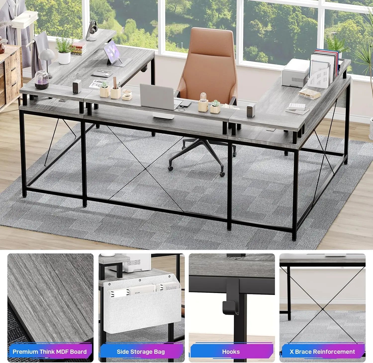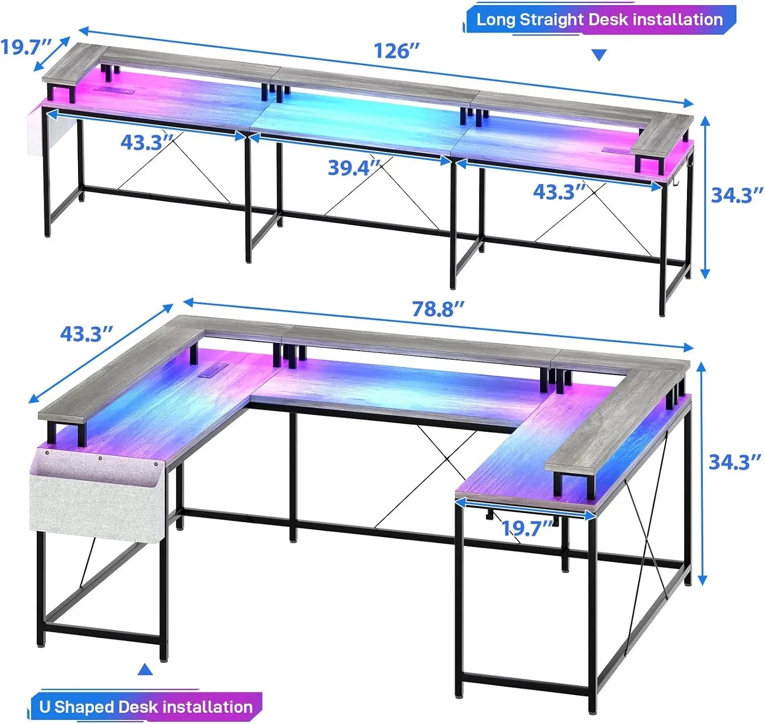 Convertible Design: Switch between a 79-inch U-shaped layout and a 126-inch long desk to accommodate diverse needs, providing distinct areas for work, play, and writing. This meticulously designed desk is not just a piece of furniture; it's a comprehensive solution that combines functionality, style, and convenience to elevate your use experience.